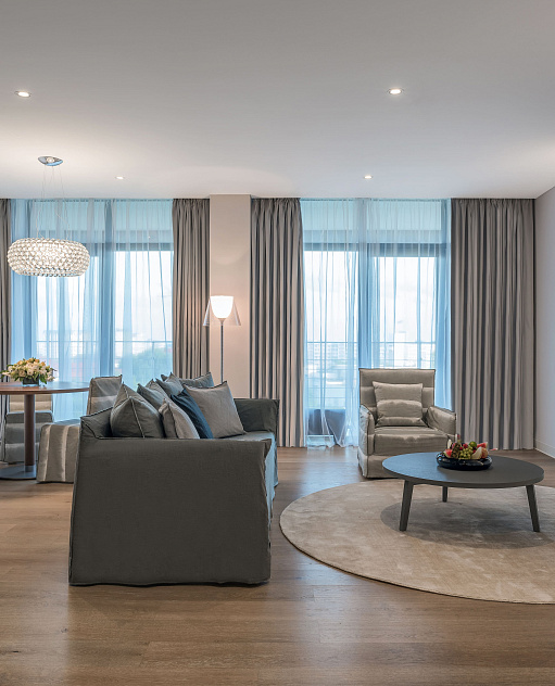 Уютный 2-х комнатный номер-люкс площадью 95 м2 с террасой и видом на Нижнее озеро. С просторной видовой гостиной, номера и террасы открывается живописный вид на Нижнее озеро.